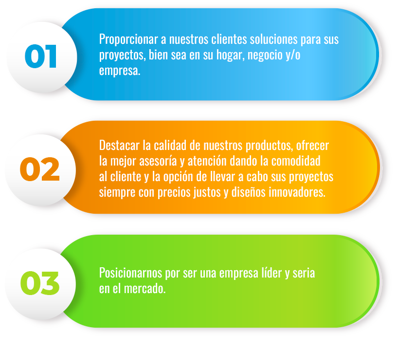 Ser una empresa líder, reconocida y distinguida, garantizando la calidad y cumplimiento en nuestros productos y servicios, resaltando el esfuerzo y profesionalismo de todo nuestro equipo de trabajo y valorando al cliente como eje principal brindando total satisfacción y enfoque en nuestro crecimiento.